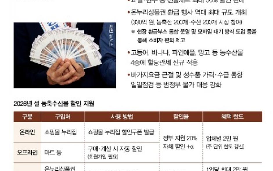 [kbn연합방송=김진영 기자] 정부가 설 명절을 앞두고 민생회복과 체감경기 안정을 위해 종합 대응에 나섰다. 정부는 1월 28일 '2026년 설 민생안정대책'을 발표하고 ...