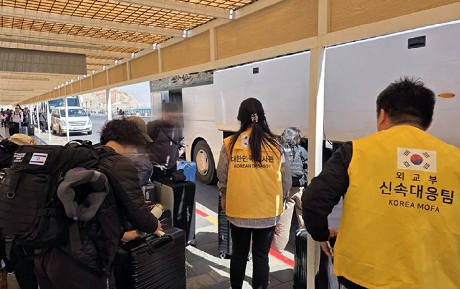 정부합동 신속대응팀이 현지시간 10일 이스라엘 체류 중인 국민과 동포 39명의 안전한 귀국을 지원하기 위해 인솔하고 있다.[kbn연합방송=김진영 기자] 외교부는 사우디아라비아 및 ...