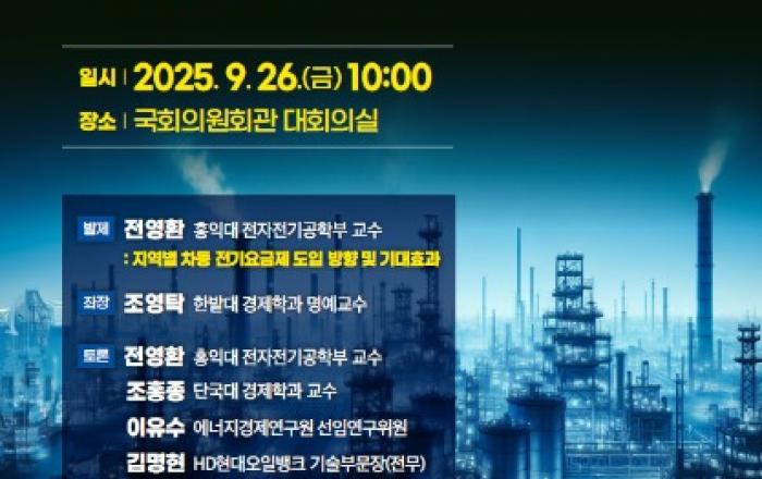 [kbn연합방송=김진영 기자] 인천광역시(시장 유정복)를 비롯한 울산광역시, 강원특별자치도, 충청남도, 전라남도, 경상북도, 경상남도 등 7개 시도는 9월 26일 오전 국회의원회관 대회의실에서 「전력자립률을 고려한 지역별 차등 전기요금제 추진을 위한 국회 토론회」를 공