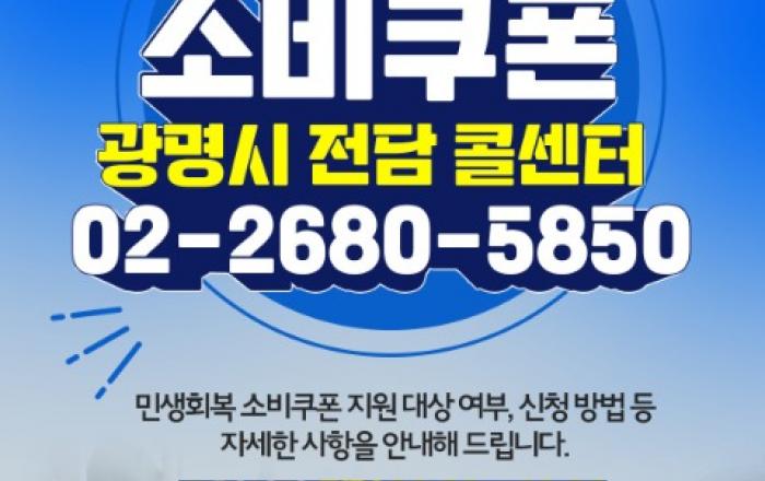 [kbn연합방송=김진영 기자] 광명시(시장 박승원)가 오는 22일부터 시작하는 2차 민생회복 소비쿠폰의 원활한 지급을 위해 ‘전담 콜센터(02-2680-5850)’를 지속 운영한다고 19일 밝혔다.전담 콜센터는 1차 지급 때와 동일하게 평일 오전 9시부터 오후 6시까지