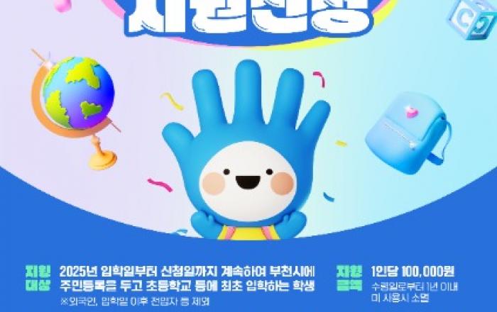 [kbn연합방송=김진영 기자] 부천시는 2025학년도 초등학교에 입학한 신입생을 대상으로, 가정의 교육비 부담을 덜고 원활한 학교생활 적응을 돕기 위해 1인당 10만 원의 입학준비금을 부천페이로 지급한다고 밝혔다.지원 대상은 2025년도에 초등학교 또는 대안교육기관에