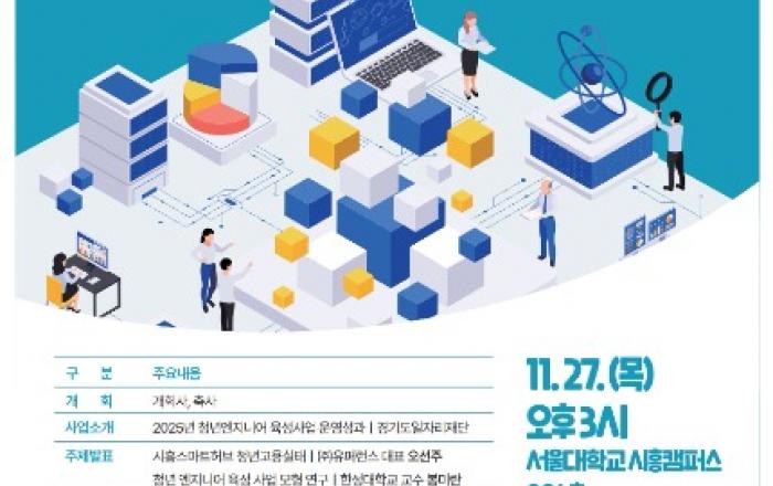 [kbn연합방송=김진영 기자] 시흥시(시장 임병택)와 경기도일자리재단은 오는 11월 27일 오후 3시, 서울대학교 시흥캠퍼스 806호에서 ‘2025 청년 엔지니어 육성 포럼’을 개최한다.이번 포럼은 ‘청년 엔지니어의 성장과 정주(定住) 로드맵’을 주제로, 산업단지의 청