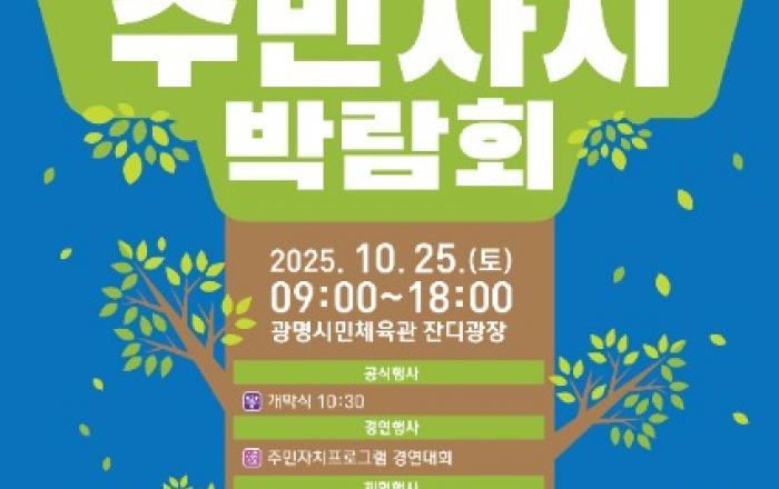 [kbn연합방송=김진영 기자] 광명시(시장 박승원)가 오는 25일 광명시민체육관 잔디광장에서 ‘제2회 광명시 주민자치박람회’를 개최한다.이번 행사는 주민자치회 활동 성과를 시민과 공유하며 자치의 가치를 확산하고, 시민이 직접 참여해 마을의 변화를 만들어 가는 소통과 체