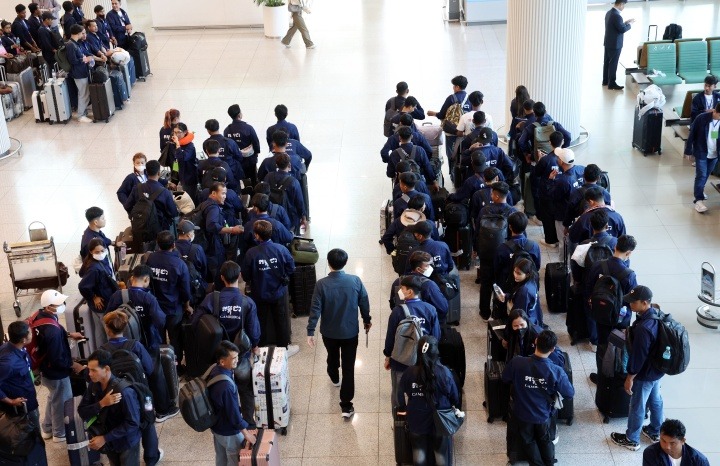 E9비자로 입국한 외국인 노동자들. 위 내용과 관련 없음.