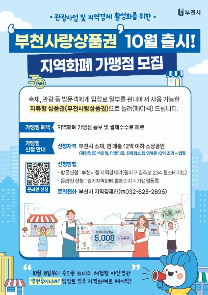 부천사랑상품권 지역화폐 가맹점 모집 홍보 포스터