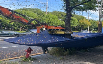 기동반은 가로수 담당 부서 직원 97명으로 구성되며, 진동수확기와 수거망을 활용해 열매를 신속히 수확하고, 낙과 발생 구간은 상시 청소를 진행한다.