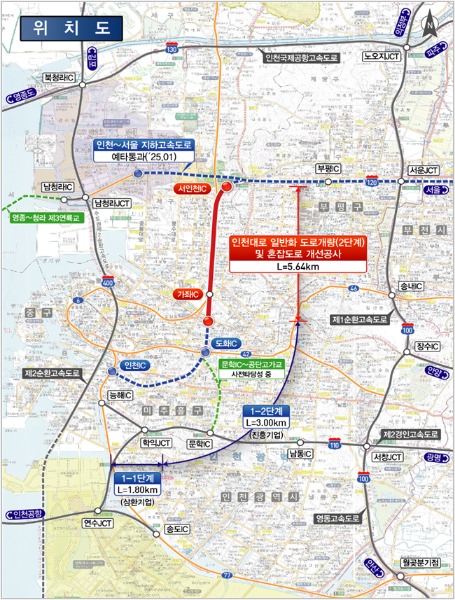 인천대로 일반화 2단계 사업은 인천대로를 시민 소통 중심의 도로로 전환하고, 원도심을 활성화하려는 도심 재편 프로젝트다. 총 5.64km 구간(주안산단고가교~서인천IC)을 일반도로와 지하차도로 개량하고, 중앙녹지를 함께 조성하는 방식으로 진행되며, 총사업비 8,222억 원을 투입해 2030년 완공을 목표로 하고 있다.