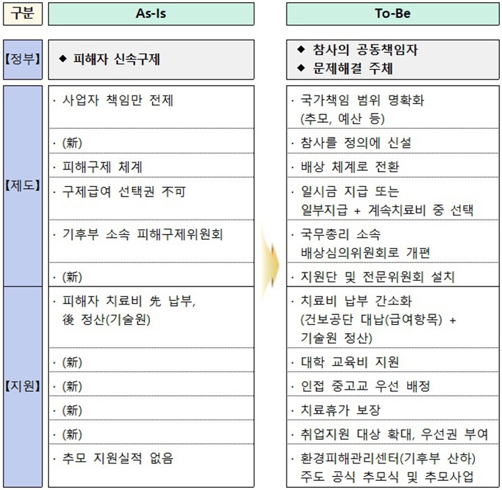 또한 손해배상 책임을 기존 기업 단독에서 기업과 국가가 공동으로 부담하는 방식으로 변경해 국가의 역할을 대폭 강화한다.