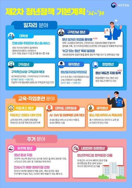제2차 청년정책 기본계획 분야・대상별 주요과제(일자리/교육・직업・훈련/주거).(국무조정실 제공)