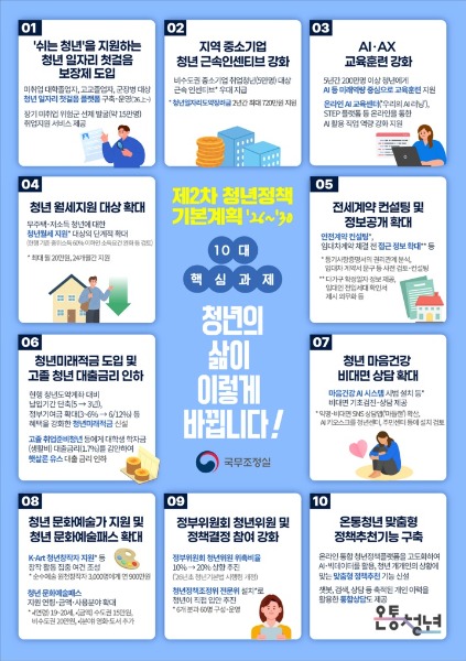 제2차 청년정책 기본계획('26~'30) 10대 핵심과제.(국무조정실 제공)