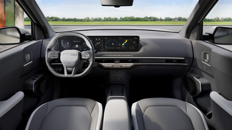 기아는 랩어라운드 형태의 크래시패드를 중심으로 12.3인치 클러스터·5인치 공조·12.3인치 인포테인먼트 시스템이 일체감 있게 연결된 파노라믹 와이드 디스플레이와 수평적 레이아웃의 송풍구 및 물리 버튼을 배치해 시각적으로 더욱 넓고 여유로운 인테리어를 구현했다.