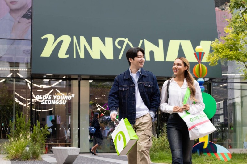 외국인 관광객이 ‘올리브영N 성수’ 매장에서 쇼핑을 마치고 나오는 모습.