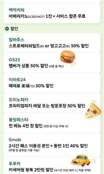 0 day 혜택도 알차게 구성됐다. 뮤지컬 ‘스윙데이즈 암호명A’ 초청 이벤트를 통해 총 100명을 무료로 초대한다. 메가 MGC커피 따뜻한 아메리카노 1잔, 백억커피 아메리카노 1잔과 서비스 팝콘도 무료로 제공된다. 도미노피자, 롤링파스타, Smob, JAJU 할인 프로모션도 운영된다.