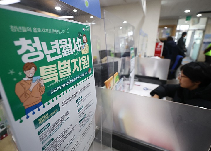 서울 동작구 상도1동 주민센터 상담 창구에 '청년월세 특별지원' 관련 홍보물이 붙어 있다. 2024.2.26 (사진=저작권자(c) 연합뉴스, 무단 전재-재배포 금지)