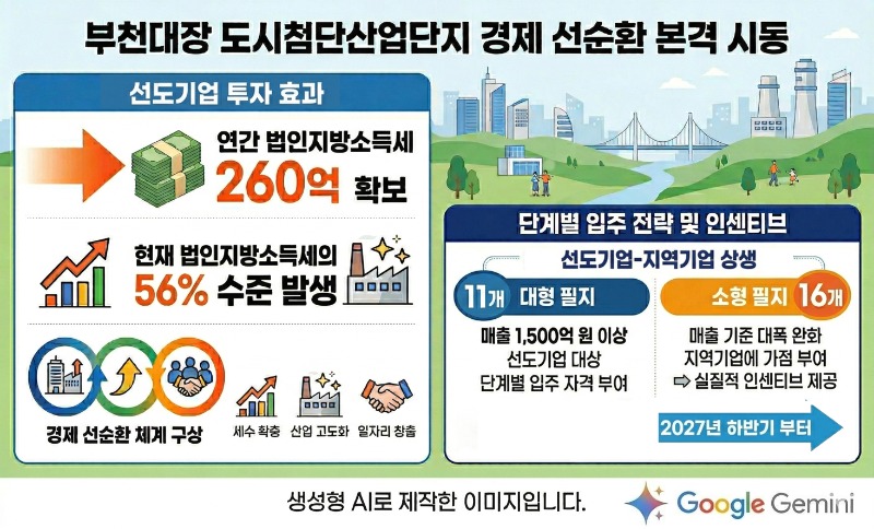 부천시는 위 기업들의 입주로 연간 약 260억 원 규모의 법인지방소득세가 새로 발생할 것으로 보고 있다. 이는 현재 시 전체 법인지방소득세의 56% 수준에 해당한다. 시는 확보한 세수를 노후 공업지역 고도화와 지역기업 지원 예산에 재투입해, ‘세수 확충-산업 고도화-일자리 창출’로 이어지는 경제 선순환 체계를 만든다는 구상이다.