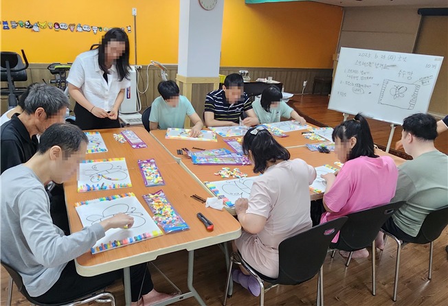 ▲찾아가는 장애인 평생학습 프로그램 ‘와우 미술로 즐겨보는 뻔뻔(Fun Fun)한 행복’ 수업 현장