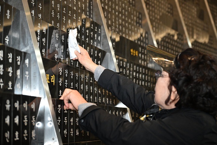 3일 오전 제주시 봉개동 제주4·3평화공원에서 열린 제78주년 제주4·3희생자추념식 전 위패봉안관을 찾은 유족들이 희생자를 추모하고 있다.(사진=저작권자(c) 연합뉴스, 무단 전재-재배포 금지)