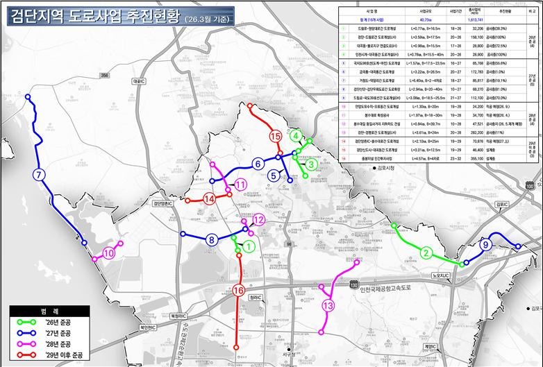 -검단 16개 도로사업 추진… 단계적 개통으로 교통혼잡 완화 기대-
