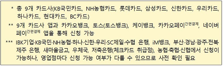 아울러 카드와 연계된 은행영업점을 방문해 오프라인으로도 신청할 수 있다.