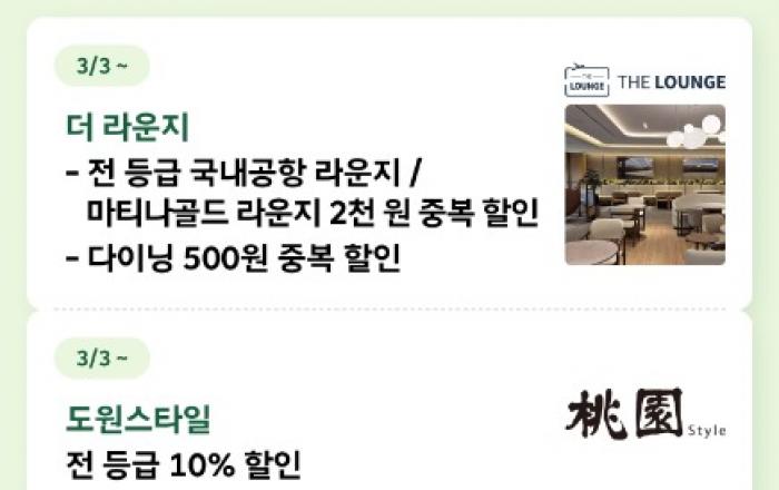 따뜻한 봄을 맞이하는 3월, SKT가 준비한 풍성한 T 멤버십 혜택 소식을 뉴스룸이 정리했다.3월에는 다양한 신규 제휴처가 T 멤버십에 추가된다. 여행의 휴식을 더해주는 공항라운지 ‘더라운지’, 중식당 도원의 세컨드 브랜드 ‘도원스타일’, 새로운 차원의 실내 스포츠 테