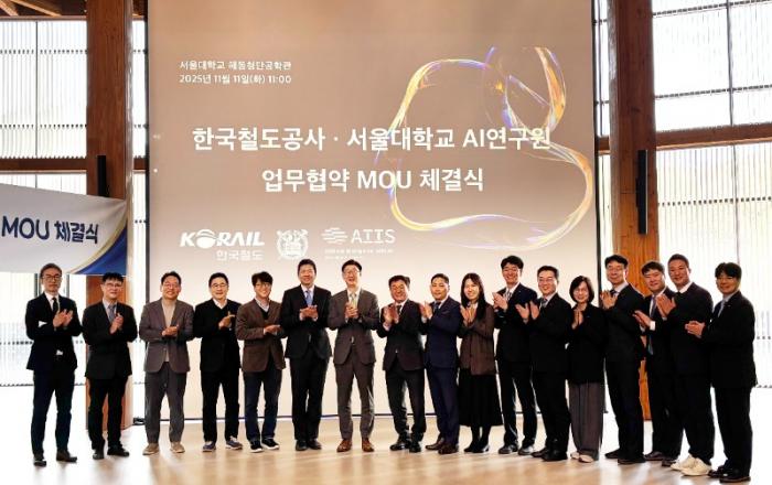 코레일 서울대학교 Ai 연구원 업무협약 체결[kbn연합방송=김진영 기자] 한국철도공사(코레일)가 11일 서울대학교에서 서울대학교 AI 연구원과 ‘철도분야 AI(인공지능) 기술협력 및 상호교류’를 위한 업무협약을 체결했다고 밝혔다.이번 협약은 철도안전과 운영분야에 AI