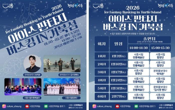 [kbn연합방송=김진영 기자] 시흥시(시장 임병택)는 지난 연말에 진행된 ‘2025 시흥 사운드 오브 윈터’의 열기를 잇는 후속 문화예술 프로그램으로, 겨울철 거북섬을 찾는 시민과 관광객에게 풍성한 즐길 거리를 제공하고자 ‘2026 아이스 판타지 버스킹 인 거북섬’을