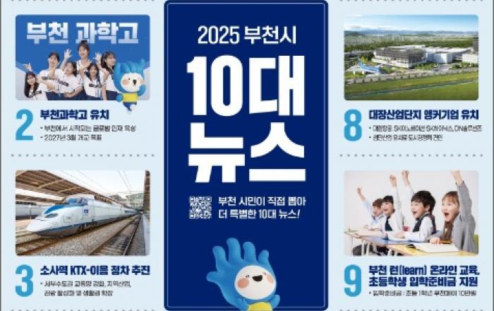 [kbn연합방송=김진영 기자] 부천시는 지난 4일, 올 한해 시정 전반에 대한 시민 체감 및 관심도를 들여다보고 향후 시정운영 방향에 반영하고자 실시한‘2025년 부천시 10대 뉴스’선정 결과를 발표했다.10대 뉴스는 시가 한 해 동안 중점적으로 추진한 15개 사업과