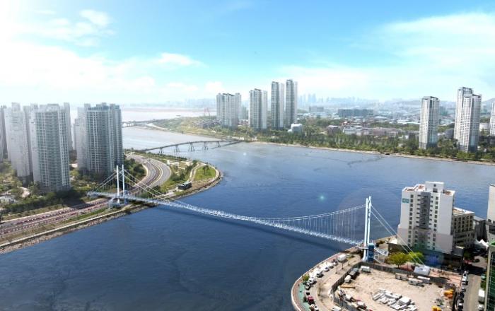 배곧~월곶 경관육교(보도교) 조감도_조감뷰[kbn연합방송=김진영 기자] 서해안 대표 명소인 시흥 월곶포구의 해상 경관을 배경으로 배곧동과 월곶동을 연결하는 현수교 형태의 횡단보도교가 건립된다.시흥시(시장 임병택)는 ‘배곧~월곶 경관육교(보도교) 설치공사’ 특