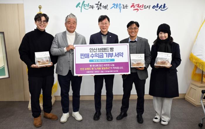 [kbn연합방송=김진영 기자] 안산시(시장 이민근)는 지난 27일 시청 시장실에서 안산 브랜드 빵 ‘노적봉 별빛츄리’ 판매 협약업소 대표자들과 공동으로 판매 수익금 기부 서약식을 개최했다고 28일 밝혔다.이번 서약식은 안산을 대표하는 브랜드 빵 판매 수익의 일부를 지역