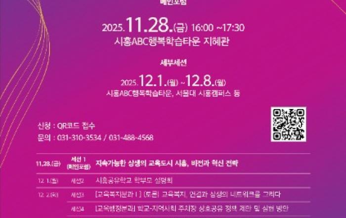 [kbn연합방송=김진영 기자] 시흥시(시장 임병택)는 시흥교육지원청(교육장 채열희), 시흥시의회(의장 오인열)와 함께 오는 11월 28일부터 12월 8일까지 ‘2025 시흥미래교육포럼’을 진행한다. 이번 포럼은 ‘지속가능한 상생의 교육도시 시흥, 비전과 혁신전략’을 주