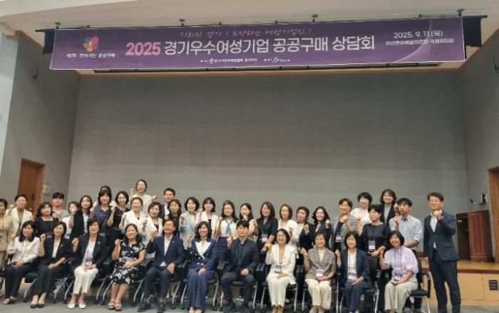 허남석 안산시 부시장(맨 앞줄 오른쪽 여섯번째 )이 안산문화예술의전당 국제회의장에서 열린 ‘2025년 여성기업제품 구매상담회’ 참석자들과 함께 기념촬영을 하고 있다.[kbn연합방송=김진영 기자] 안산시(시장 이민근)는 지난 11일 안산문화예술의전당 국제회의장에서 한국여