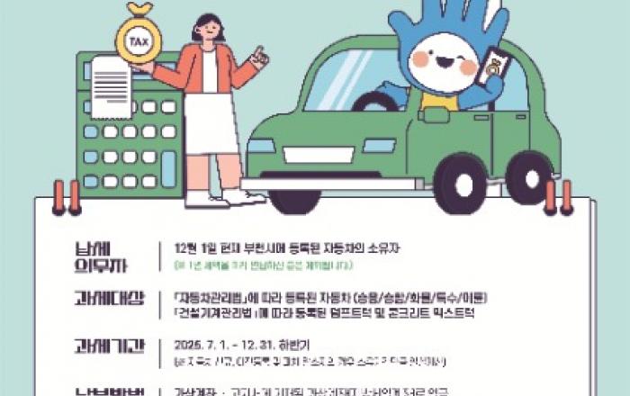 [kbn연합방송=김진영 기자] 부천시는 12월 자동차세 납부의 달을 맞아 제2기분 자동차세를 부과하고, 지난 11일부터 고지서를 우편 및 전자송달 방식으로 발송했다고 밝혔다. 부과 건수는 14만 9,103건, 금액은 240억 원이다. 자동차세는 매년 6월과 12월 두