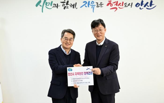 [kbn연합방송=김진영 기자] 안산시(시장 이민근)는 이민근 시장이 김동연 경기도지사를 만나 안산 지역 현안을 설명하고 주요 정책을 건의하는 시간을 가졌다고 12일 밝혔다.이민근 안산시장은 지난 11일 안산을 찾은 김동연 경기도지사에 반월국가산단 경쟁력 강화, 신안산선