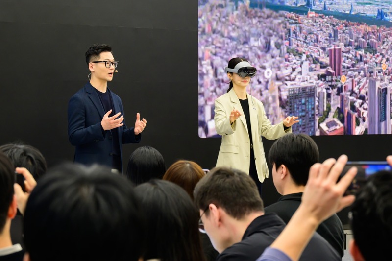 영상이 끝난 후, 삼성전자 MX사업부 XR UX그룹장 이승민 상무와 박유진 프로가 제품을 직접 선보이며, 주요 기능을 시연했다. 이승민 상무는 “갤럭시 XR을 통해 새로운 장소로 가상 여행을 떠나고, 눈 앞에 보이는 모든 것을 검색하며, 과거의 순간을 생생하게 다시 경험할 수 있다”고 설명했다.▲ 삼성전자 MX사업부 이승민 상무와 박유진 프로가 갤럭시 XR에 대해 소개하고 있다