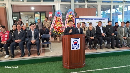윤동섭 회장은 환영사에서 게이트볼은 비교적 쉬운 경기규칙과 무리가 되지 않는 움직임으로 누구나 쉽게 즐길 수 있는 스포츠입니다 특히 노년기에 약해지기쉬운 하체부위를 게이트볼을 통해 단련 할수있는 운동이며 동호인이 점점 늘어나고 있으며 “범”국민적인생활체육을 대표하는 스포츠로 자리매김 하고 있으며,