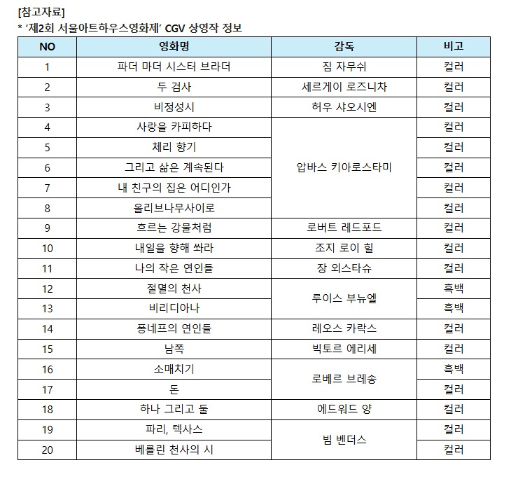 ‘제2회 서울아트하우스영화제’ 20~23일 CGV용산아이파크몰·압구정 아트하우스에서 진행