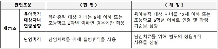 육아휴직 대상 '12세 이하'로 상향…스토킹 등 징계시효 '10년'으로 연장