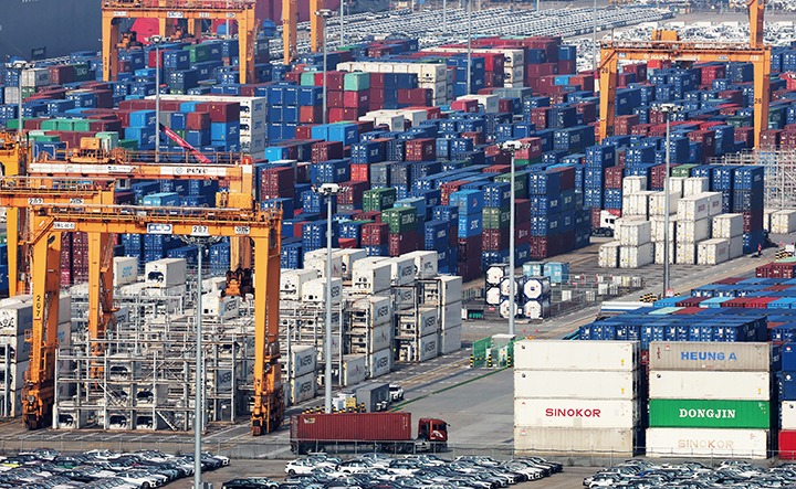 30일 경기도 평택항에 컨테이너가 쌓여 있다.