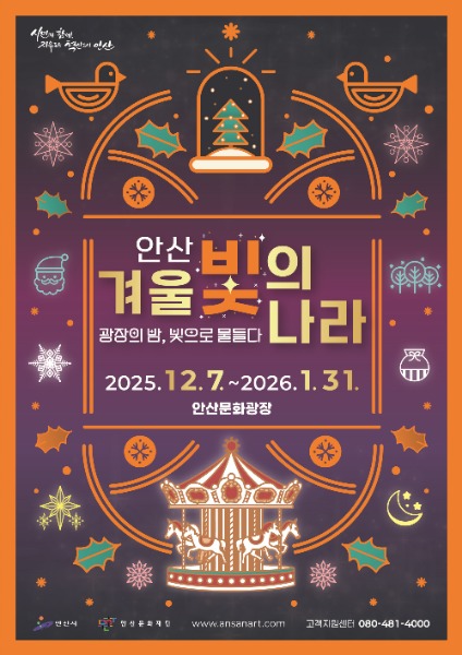 이민근 안산시장은 “이번 축제는 시민들에게 위로와 감사의 마음을 전하기 위해 마련한 것인 만큼, 빛으로 물든 광장이 안산의 겨울밤을 특별하고 따뜻하게 만들어주길 기대한다”며 “축제의 마지막까지 시민 불편이 없도록 철저히 준비하겠다”고 말했다.
