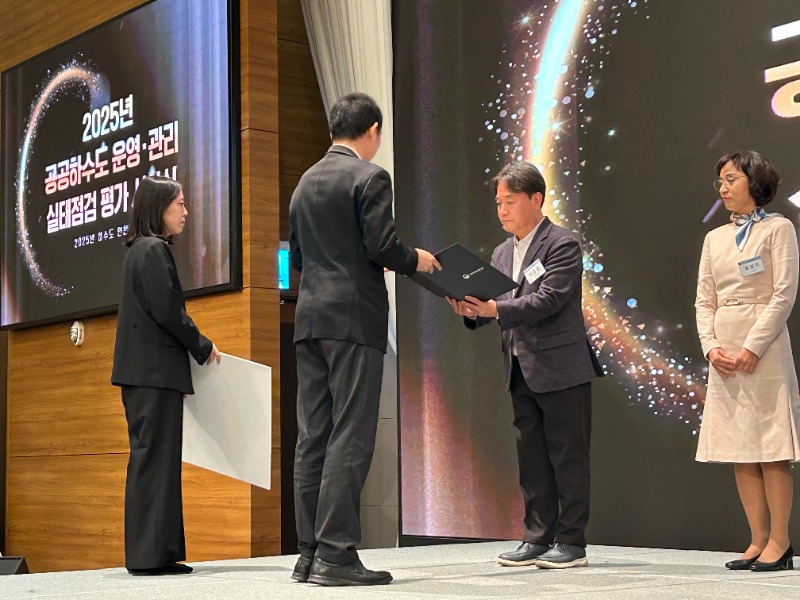 이동훈 부천시 수도자원국장이 ‘2025년 공공하수도 운영·관리 실태점검’에서 최우수상을 수상하고 있다.