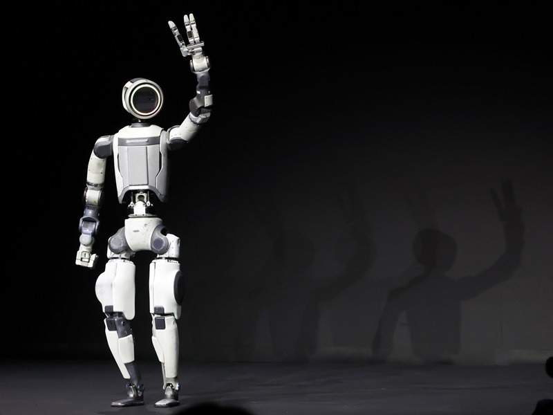 세계 최대 가전·정보기술(IT) 전시회 'CES 2026' 개막을 하루 앞둔 5일(현지시간) 미국 네바다주 라스베이거스 만달레이베이에서 열린 현대차그룹 프레스 컨퍼런스에서 휴머노이드 로봇 아틀라스가 관객들에게 인사하고 있다. 2026.1.6(ⓒ뉴스1, 무단 전재-재배포 금지)