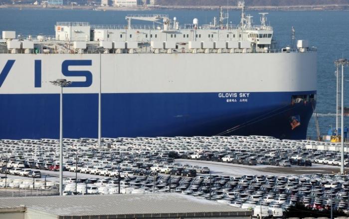 도널드 트럼프 미국 대통령이 26일(현지시간) 한국 의회가 무역 합의를 이행하지 않고 있다며 상호관세를 비롯해 자동차 등 품목 관세를 15%에서 25%로 인상하겠다고 밝혔다. 사진은 27일 경기 평택시 포승읍 평택항에 수출용 차량이 세워져 있는 모습.(ⓒ뉴스1, 무단 전재-재배포 금지)