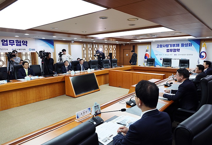 윤호중 행정안전부 장관이 고향사랑기부제 활성화를 위한 업무협약식에서 인사말을 하고 있다. 2025.11.28 (ⓒ뉴스1, 무단 전재-재배포 금지)