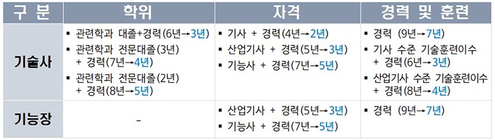 기술사·기능장 경력 응시자격 조정(안)